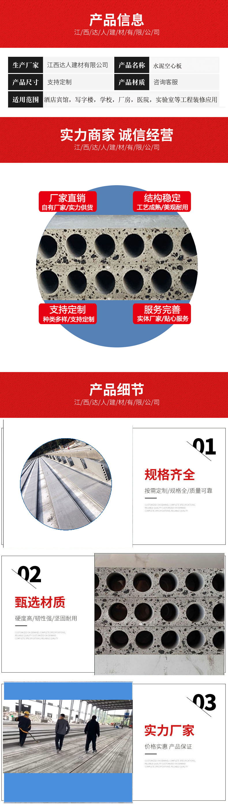 江西達(dá)人建材有限公司是集設(shè)計、開發(fā)、制造、銷售,安裝為一體,以環(huán)保墻材及輕質(zhì)陶粒為主導(dǎo)產(chǎn)品的技術(shù)研發(fā)及專業(yè)化生產(chǎn)企業(yè)。主要產(chǎn)品有新型EPS輕質(zhì)隔墻板,輕質(zhì)陶粒隔墻板,輕質(zhì)復(fù)合隔墻板,建筑回填保溫陶粒,花卉園林綠化頁巖陶粒,污水處理黏土陶粒等產(chǎn)品。公司座落于東鄉(xiāng)縣大富崗工業(yè)園區(qū)內(nèi),北臨梨溫高速公路,東臨浙贛鐵路東鄉(xiāng)站,西臨東撫一級公路,地理位置優(yōu)越,交通便利。公司占地總面積為200畝,其中生產(chǎn)用廠房、倉庫、實驗室等用房建筑面積100000平方米,辦公、生活等用房建筑面積5000平方米,項目總投資5000萬元。